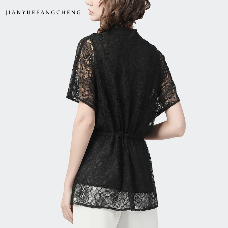 2022 Spring Summer Black Hollow Lace Shirt Women Short Sleeve V Neck Mid Length Tunic Top Fashion Casual All Match Ladies Blouse Women Shirt Aliexpress